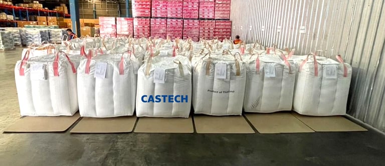 นอกเหนือจากการจำหน่ายภายในประเทศแล้ว แป้ง CASTECH ยังได้รับความไว้วางใจจากลูกค้าจำหน่ายส่งออกไปยังต่างประเทศอีกด้วย เนื่องจากความสามารถในการควบคุมคุณภาพ การควบคุมต้นทุน และการให้บริการที่เป็นที่น่าพอใจ